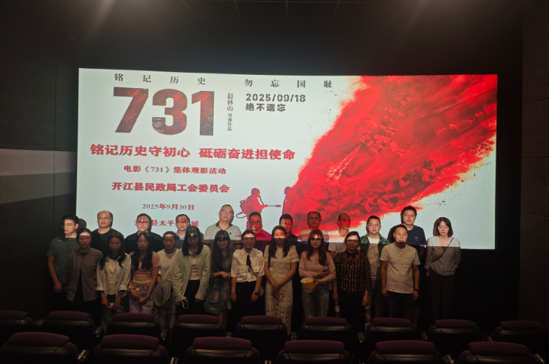 为纪念中国人民抗日战争暨世界反法西斯战争胜利80周年,进一步弘扬爱国主义精神,深刻铭记历史,凝聚奋进力量,筑牢党员干部理想信念,9月30日,开江县民政局工会组织全体工会职工集中观看《731》电影,通过影像回顾历史,接受深刻的党性教育与精神洗礼。
