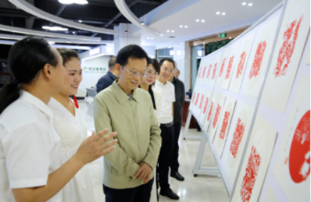(市、区总工会领导参观剪纸作品展)