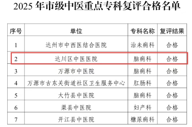 热烈祝贺达州市达川区中医医院脑病科通过2025年市级中医重点专科复评