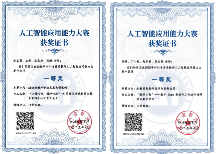 .四川三河职业学院教师在四川省教师人工智能应用能力大赛中获2项一等奖