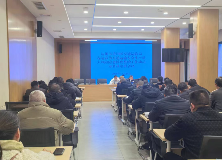 为全力保障2026年春运春节期间交通运输安全,12月23日,达川区交通运输局组织召开专项工作动员部署暨培训会议。会议深入学习相关工作方案,并对全区交通运输领域风险隐患排查整治行动进行了系统部署。局属各单位、相关业务股室、辖区运输企业及在建项目负责人参加会议。