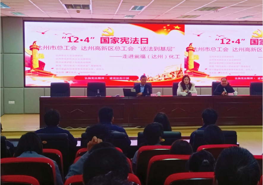 今年12月4日是第十二个国家宪法日,为大力弘扬宪法精神,切实增强职工法治观念,达州市总工会、达州高新区总工会“送法到基层”活动走进瓮福达州化工有限责任公司,将法律知识与服务送到职工身边。