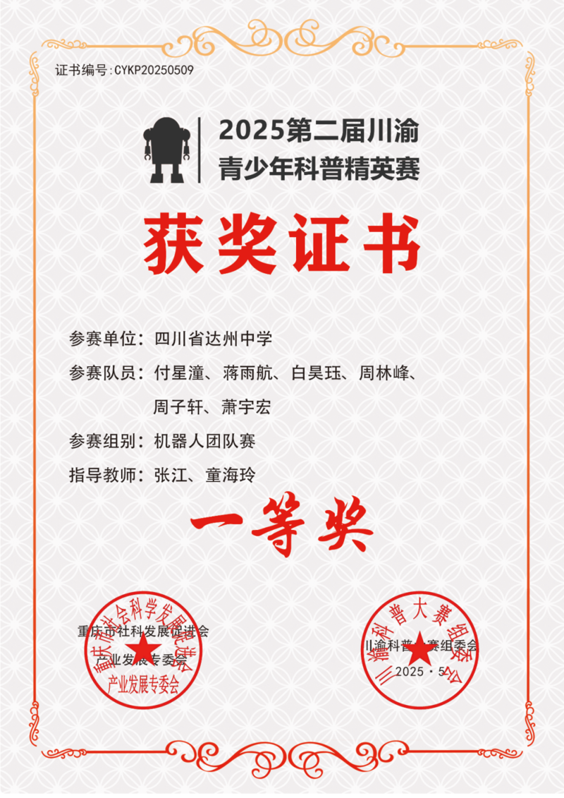 四川省达州中学机器人赛队斩获川渝科普大赛一等奖
