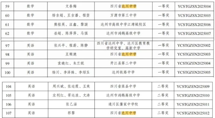 祝贺!四川省达川中学教师在全市学业质量评价原创试题征集中获奖