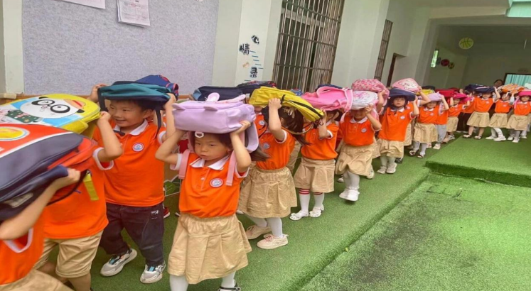 室外疏散撤离。一分钟后,随着第二次警报声响起,孩子们在教师的组织下,弯腰低身,双手抱头或者用书包遮住头等方法护住头部,沿着逃生路线快速、有序地撤离到园门口的空旷处,用时2分48秒。