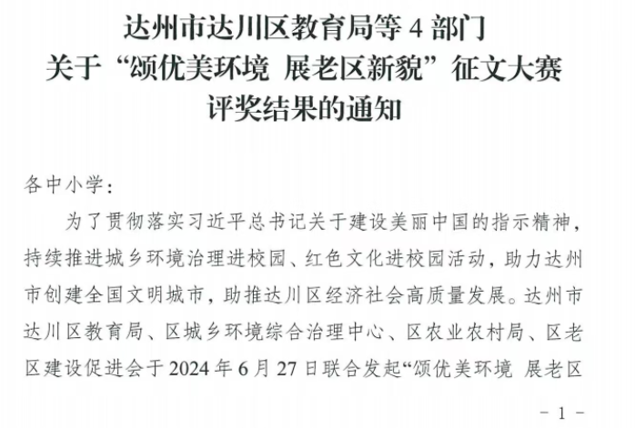 硕果盈枝缀满园,捷报频传奏凯歌! 在这个洋溢着收获与喜悦的季节里,我们怀着无比激动的心情,向全体师生、家长以及长期关心支持达川中学发展的社会各界人士报喜! 近日,从国家、市、区各级各类作品征集活动接连传来佳音,达川中学师生凭借出色的才华、独特的创意与不懈的努力,一路“披金斩银”,成绩斐然,捷报频传! 无论是文学创作的锦绣篇章,还是艺术创作的匠心硕果,都得到了评委专家们的高度认可,充分展现了达川中学师生卓越的综合素养与昂扬的精神风貌。 【一】 西南林业大学承办的第五届“智华杯”全国艺术作品竞赛最近公布了获奖作品,川中学子书法作品在众多参赛作品中脱颖而出,其中:作品《风度山横联》斩获银奖,《题邓爱慕》、杜牧《江南春》两件作品喜获佳作奖,赵庭老师荣获“优秀指导教师”。 祝贺以上获奖师生!让我们一同为学子们的才华喝彩,也祝愿同学们在艺术熏陶中汲取向上的力量! 【二】 达州市首届中小学生最美散文、诗歌作品征集大赛近日公布了获奖名单,达川中学共有10件作品获奖,其中,一等奖1个,二等奖1个,三等奖2个,优秀奖4个,入围奖2个,毕素琼、唐鑫、唐丽、文春梅四位老师获得“优秀指导教师”称号,达川中学获得“优秀组织单位”。 据悉,本次活动由四川文理学院、达州市关心下一代工作委员会、达州市教育局、共青团达州市委、达州市融媒体中心主办,由巴山作家群研究院、四川省青少年文学艺术社科普及基地、达州晚报教育周刊、达州市达报教育管理有限公司承办,旨在发展我市校园散文诗歌文化,传承弘扬我市优秀传统文化,进一步选拔和培养优秀文学人才,提升我市青少年文化艺术水平。活动开展以来,川中学子热情参与,积极投稿,取得了良好的成绩。在此向所有获奖同学致以最热烈的祝贺!也向辛勤指导的老师表示衷心感谢! 诗心不熄,创作不止。期待更多川中学子提笔书写属于你们的璀璨篇章! 【三】 在中共达州市委教育工作委员会和达州市教育局组织的“立报国强国大志向,做挺膺担当奋斗者”主题征文比赛活动中,达川中学共有6名师生获奖,其中,庞智蔓、周优莹、郑晶嫣三位同学的作品分别获得了优秀奖,庞艳老师的《粉笔为楫渡星河:一名中学班主任教师的时代答卷》获得一等奖,何春梅老师的《鹰扬万里凌云际,志报家国正当时》获得二等奖,唐娅老师的《指尖上的红色旋律:在达州红土奏响育人华章》获得优秀奖。 【教师组】 祝贺获奖老师和同学! 字字见肝胆,篇篇显风华。川中人用笔书写祖国的精彩篇章,用行动践行“强国有我” 的铮铮誓言! 【四】 达州市达川区教育局等4部门公布了关于“颂优美环境 展老区新貌”征文大赛评奖结果,达川中学有4件学生作品获得优秀奖,学校在本次活动中也获得优秀组织奖。 祝贺以上获奖同学!你们用真情实感表达的不仅仅是对老区新貌的赞美,亦是浓浓的家国情怀与民族自豪感! 老家达县,宜美达川。青山绿水风光好,还历史悠久、底蕴深厚,在新时代焕发新气象。 这些沉甸甸的荣誉,是同学们勤学苦练的智慧结晶,是老师们悉心指导的丰硕成果,更是达川中学坚持“五育并举”、全面育人的生动体现!