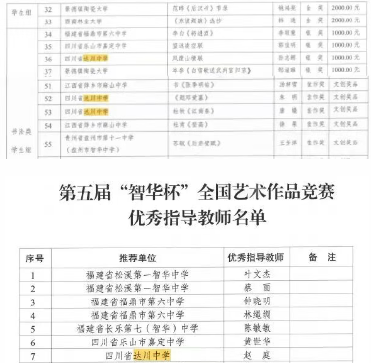 祝贺!四川省达川中学近三十名师生在各级各类活动中获奖