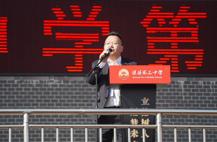 入场仪式后,渠县第三中学党委副书记、校长熊富强随即发表致辞。他首先向运动会的顺利开幕致以热烈祝贺,向辛勤付出的教练员、工作人员及裁判员表达诚挚敬意,并向全体同学寄予深切期望:以“不破楼兰终不还”的决心驰骋赛场,以“直挂云帆济沧海”的豪情超越自我,在竞技中书写青春华章。