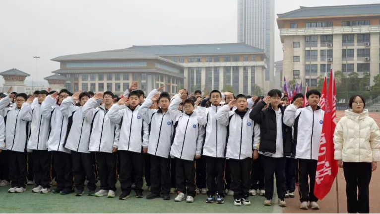 仪式的高潮部分是全体学生的庄严宣誓。同学们高举右手,誓言铿锵:“铭记历史,勿忘国耻;继承遗志,奋发图强……为实现中华民族伟大复兴的中国梦,时刻准备着!”坚定的誓言在校园上空回荡,展现了川中学子昂扬向上的精神风貌和赤诚报国的坚定决心。