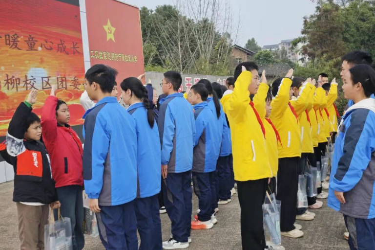 12月7日,达州中学杨柳校区团委组织全体团员赴石桥列宁街开展以“赓续一二·九薪火,砥砺新时代青春”为主题的团日活动,传承红色基因,锤炼青春品格。 途中,团员们齐唱红色歌曲,尽显青春朝气。抵达后,在解说员引导下,大家瞻仰列宁同志雕像。 团员代表聂可馨发言致敬先辈,全体团员重温入团誓词,誓言铿锵有力。 重温入团誓词 随后,团员们走进红色文化展览馆,通过文物与影像资料,沉浸式感悟石桥镇的革命历程。 参观文化展览馆 漫步“中国红色第一街”列宁街,观摩古石牌坊,深刻体会幸福生活的来之不易与党的领导的重要意义。 漫步列宁街 在列宁小学(红军小学),优秀团员赵韵瑶分享感言,团员们与该校优秀学生代表交流互动并赠送礼物。活动中,团员们还完成了运动操、呼啦圈传递、两人三足、拔河等团队项目。 互赠礼物 最后,在教官的指导下,团员们依次进行了模拟肩扛火炮的演练,亲身体验革命年代的艰辛与英勇,强化了纪律意识和团队配合能力。 模拟肩扛火炮 此次活动,深化了团员们的历史认知,凝聚了团队力量,锤炼了意志品格,彰显了新时代团员昂扬向上的精神风貌。