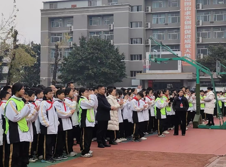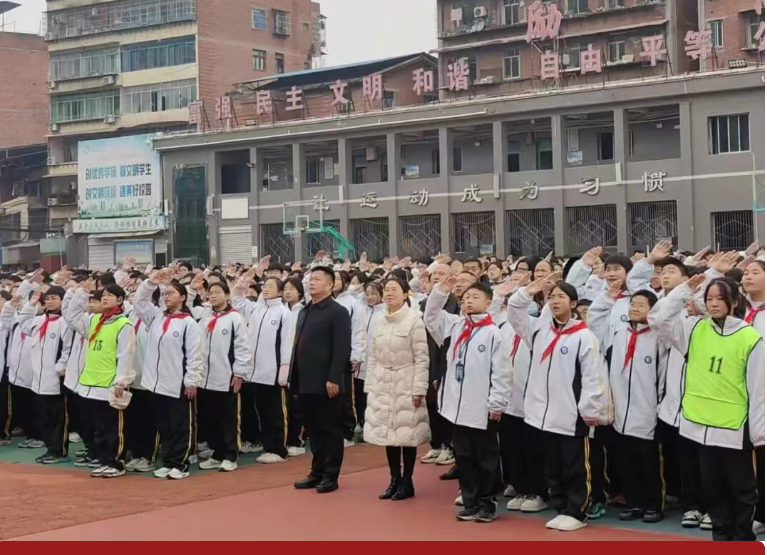 新年伊始,万象更新。 1月5日上午,四川省达川中学举行“回望成长路·勇赴新征程”主题升旗仪式,师生齐聚一堂,以庄严的仪式告别2025,展望2026,共同开启新一年的奋斗征程。 仪式在庄重而充满朝气的氛围中拉开帷幕。伴随着雄壮的国歌声,鲜艳的五星红旗冉冉升起,全体师生肃立行礼,表达对祖国的崇高敬意。 升旗仪式后,高一(16)班杨吉缘同学在国旗下发表演讲。她回顾过去一年,同学们在学业上的拼搏,生活中的感悟,面对挑战时的坚韧,以及与同伴携手共进的温暖,倡议全体同学既要感恩过去的成长与收获,也要勇敢直面未来的机遇与挑战,以日复一日的踏实努力,书写2026年更加优异的篇章! 随后,学校学生处主任吴志德发表讲话。他向同学们提出三点期望:一要心存良善,反对欺凌,共建友善校园;二要惜时笃学,勤奋专注,扎实投入期末复习;三要敬畏规则,严于律己,做到诚信应考。他勉励全体同学将善良、勤奋与规则化为自觉行动,以崭新姿态迎接新年挑战。 此次主题升旗仪式既是一次生动的爱国主义教育,更是一场深刻的心灵激励与行为规范引导。它引导川中学子在回望中积蓄力量,在展望中坚定方向。站在2026年的新起点上,全体师生必将以更加笃定的信念和更加坚实的步伐,共同奔赴新征程,在奋斗中定义青春,在拼搏中实现梦想,为个人成长与学校发展注入新的活力!