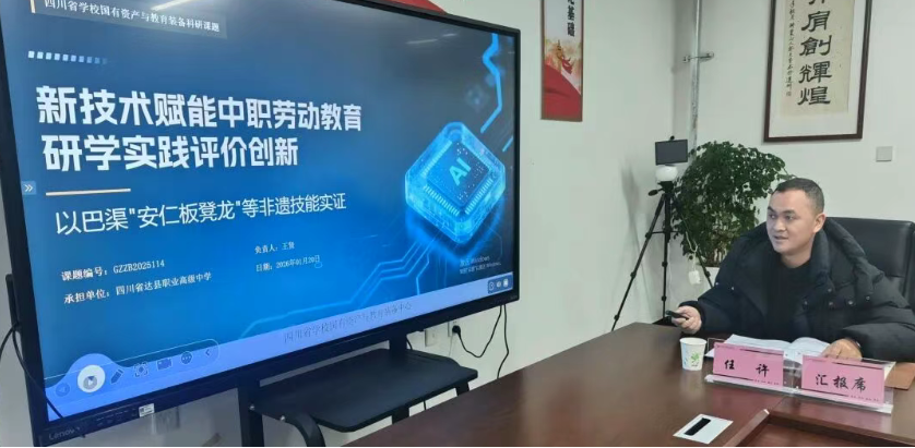 岁寒蕴暖意,科研启新章。1月20日,四川省达县职业高级中学在职教园校区成功举行省级课题(编号:GZZB2025114)《新技术赋能中职劳动教育研学实践评价创新——以巴渠“安仁板凳龙”等非遗技能实证》开题论证会。课题旨在通过新技术赋能构建面向中职劳动教育研学实践的多维动态评价体系,深度融合巴渠非遗技艺传承与职业教育特色。 论证会特邀正高级教师、四川省特级教师牟必轩,正高级教师、达州市电化教育与技术装备中心教育数字化应用与培训主任邓旭辉,正高级教师、达州市电化教育与技术装备中心研究与实践室主任何晓娅三位专家到会指导。学校党委书记杨勇,党委委员、副校长、课题负责人王贤及课题组全体成员参加会议。 会议由王贤副校长主持。杨勇代表学校致欢迎辞,并介绍了近年来学校在课题研究与非遗传承方面取得的成绩。何晓娅现场宣读了四川省学校国有资产与教育装备中心对本课题的立项批复文件。 教务科副科长、职教园校区负责人、课题主研人员任许代表课题组作开题陈述,围绕“问题提出与核心概念界定”“研究综述与研究意义”“研究目标与内容”“研究措施与活动”“预期成果与效果”“研究保障条件”六大方面进行了系统汇报,清晰勾勒出课题实施的路线图。 专家组听取汇报后,对课题的选题价值、创新设计和实践意义给予了高度评价,一致认为该课题立足区域特色、紧扣教育数字化转型趋势,具有重要的现实意义与推广前景。专家们结合中职教育实际与非遗传承特点,就课题研究的重点难点、方法路径、成果转化等方面提出了具体而宝贵的指导意见,并对评价工具开发、实践样本选取、指标体系构建等关键环节给予了细致指导。 课题组认真听取了专家建议,并进行了深入研讨。一致认为,通过此次论证,研究思路更加清晰,实施路径更为明确。下一步,课题组将根据专家意见进一步优化研究方案,扎实开展调研、工具开发与三轮实践试点,力争形成具有川东北特色、可复制推广的中职劳动教育研学评价改革成果,为深化职业教育改革、赋能非遗活态传承贡献智慧与力量。