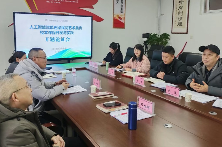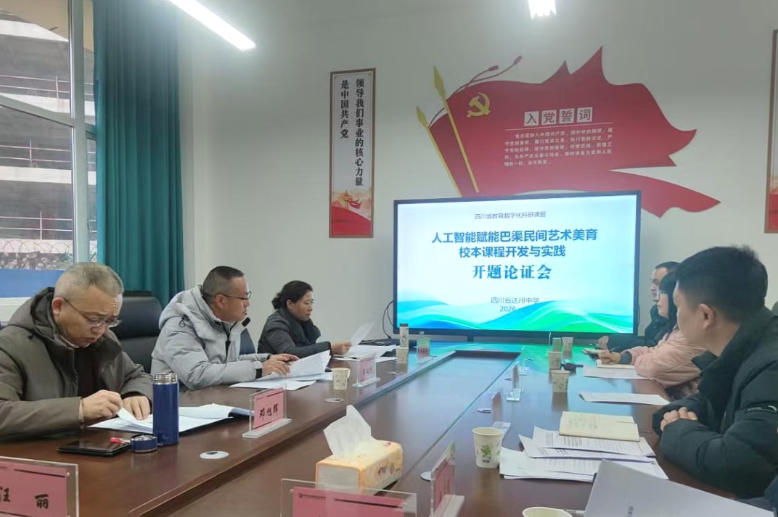 雅韵融冬,研途新章。1月20日上午,四川省达州中学高级教师余波主持的省级课题《人工智能赋能中学巴渠民间艺术美育校本课程开发与实践》开题论证会在达县职业高级中学顺利召开。 本课题是以培养学生核心素养为导向,以巴渠民间艺术为载体,以AI技术为创新动力,整合教育技术学、艺术学等多学科视觉,探索构建符合中学生认知特点与美育规律的核心课程体系,形成自我迭代、持续生长、充满生命力的智慧美育新生态。 论证会在正高级教师、四川省特级教师牟必轩,正高级教师、达州市电化教育与技术装备中心邓旭辉、何晓娅三位资深专家指导召开,他们以专家视角为课题精准导航。课题主持人余波携课题组全体成员参会,成员汇聚美术、音乐、计算机等学科,形成跨学科智慧交融,为研究筑牢坚实根基。 专家组对课题选题立意与创新高度赞誉,认为其立足巴渠文化根脉,紧扣 “科技 + 美育” 时代脉搏,兼具理论深度与实践温度。专家们从课题名、研究内容、成果展现等方面作了系统指导。 课题组认真聆听、悉心研讨,课题主持人余波作表态发言:“专家指导如拨云见日,让研究思路更清、方向更明。” 下一步,课题组将吸纳专家智慧,精研方案,深耕巴渠文化沃土,巧用 AI 技术研发特色课程,推进实践试点,力争打造 “可复制、有特色” 的美育范例,让巴渠艺术之美浸润校园,为传统文化传承与美育改革贡献达州中学的智慧与力量。