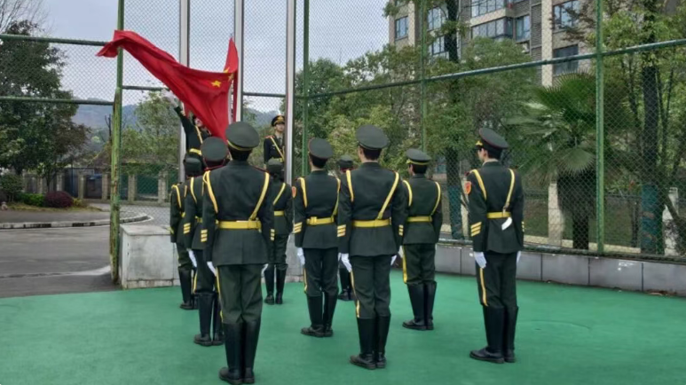 伴随着雄壮激昂的《义勇军进行曲》,鲜艳的五星红旗在全体师生的庄严注目中冉冉升起。春风拂面,国旗飘扬,全校师生肃立行礼,高唱国歌,表达对伟大祖国的无限热爱与崇高敬意。