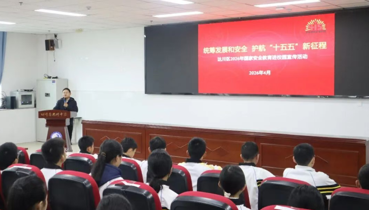 在第十一个全民国家安全教育日即将到来之际,为增强青少年国家安全意识,推动国家安全教育深入人心,4月8日上午,由达州市达川区委办公室、达川区教育局、达川区公安分局、达川区委网信办、达川区国动办、达川三里坪街道等多部门联合主办的“2026年全民国家安全教育进校园宣传活动”在达川中学三里校区多功能报告厅举行,此次活动由副校长周炀主持。 活动在暖场歌曲《少年》的旋律中拉开帷幕,学生们有序入场,各单位工作人员现场发放宣传资料,营造出浓厚的宣传教育氛围。随后,全体人员共同观看了宣传视频《忠诚》(《惊蛰无声》片尾曲),通过生动的影像,进一步加深了同学们对国家安全重要性的理解。 活动中,三里坪派出所副所长邱晨警官为同学们带来了一场内容丰富、深入浅出的国家安全知识宣讲。邱警官结合实际案例,讲解了国家安全的基本内涵、当前面临的风险挑战,以及青少年应如何自觉维护国家安全等内容,现场气氛热烈,同学们认真聆听,受益匪浅。 紧接着,活动进入了互动答题环节。同学们踊跃举手,积极参与,围绕国家安全知识展开答题。答对者还获得了精美的宣传小礼品,现场掌声不断,气氛活跃。通过寓教于乐的方式,进一步巩固了同学们对国家安全知识的理解和掌握。 活动最后,主持人作总结发言。他指出,国家安全如同空气,虽无形却至关重要。无论是“蛟龙”潜海,还是“北斗”指路,国家的每一项成就都离不开安全稳定的环境。希望同学们将国家安全意识内化于心、外化于行,以青春之我守护青春之国,用实际行动书写无愧于时代的青春篇章。 活动结束后,各单位工作人员还为在场学生发放了宣传小礼品——小风扇,深受同学们喜爱。 此次全民国家安全教育进校园宣传活动,不仅增强了同学们的国家安全意识和法治观念,也进一步推动了国家安全教育在校园的常态化、制度化开展,为构建平安校园、和谐达川注入了青春力量。