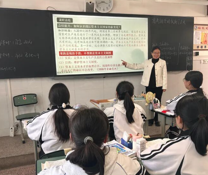 高三历史复习,向来是知识点繁杂、时间线交错,面对繁重的备考任务,张雪梅老师从不让课堂变得沉闷枯燥。她的课堂,没有照本宣科的生硬灌输,全是贴合高三备考的实用讲解与鲜活解读。每节课前,她都会提前梳理好考点框架,把古今中外的历史事件、制度变革、人物影响,串成清晰的脉络,黑板上的板书工整细致,重难点用不同符号标注,让学生一眼就能抓住核心。