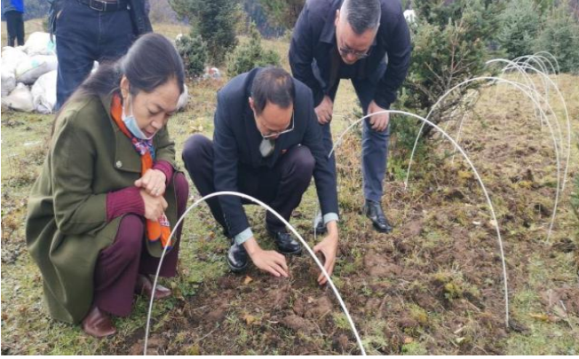 王崇秀一行来到海拔3500米左右的毛木初村林下种植羊肚菌基地,通过实地查看、与村民交流、听乡政府领导汇报等方式,充分了解到该项目属于市引进的重点打造产业振兴项目,更是贯彻落实中央关于发展林下经济的重要举措,采取“引进企业投资+村民务工+专家技术指导+统筹管理+订单销售”模式,依托毛木初早晚温差大、气候适宜等优势,在林下间种形式在梭磨乡先期试点种植200亩,目前已播种150亩,均长势良好。