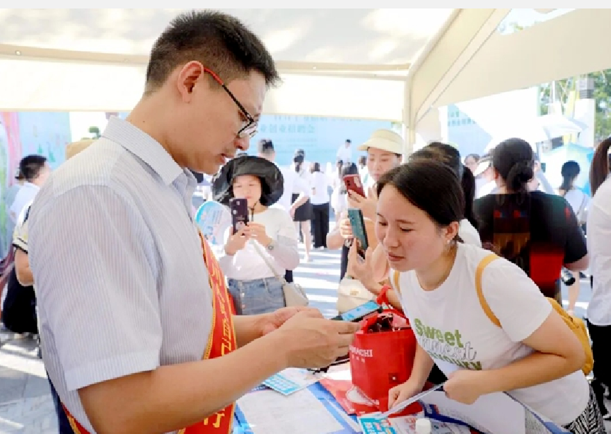 集市现场不仅为企业和青年搭建了高效的对接平台,还面向市民游客展示了华蓥山蜜梨、油樟、葡萄等本地特色农产品,融合传统文化元素,营造出富有生机与地域特色的活动氛围,受到广泛好评。求职者周强表示:“这种招聘方式接地气、有新意,氛围轻松,我很喜欢。我在这里找到了理想的互联网相关工作。”