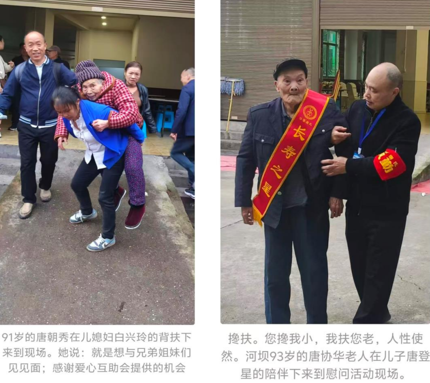 敬老仪式,传承孝道润和谐。活动在庄重而温馨的氛围中拉开帷幕。唐瑞林会长代表全体宗亲,向到场的长寿老人和陪护人员,表达了最诚挚的节日祝福和崇高敬意。年轻的唐氏宗亲代表向九十岁以上的68位高寿老人,敬赠慰问金每人1000元、慰问品菜籽油一桶、蒙牛牛奶一件。向新增的23位高寿老人每位敬献“长寿之星”匾牌和绶带各一个。向八十岁以上的426位长寿老人敬赠菜籽油一桶、蒙牛牛奶一件的节日礼品。现场气氛热烈,充分展现了唐氏家族尊老孝亲的良好风尚和社会和谐。