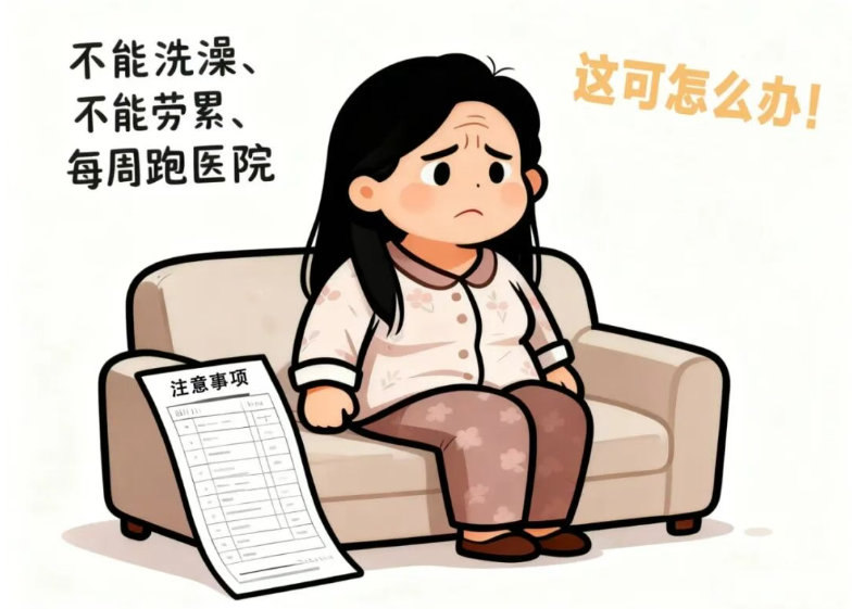 “洗澡要小心、家务要避开、每周跑医院维护导管……”这些困扰让她满心焦虑。