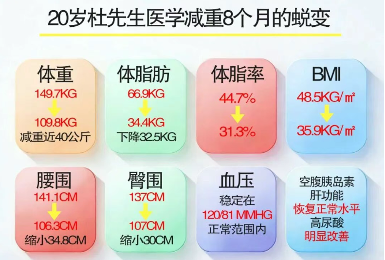 医学减重核心价值在于三维目标协同实现:体重显著下降的同时肌肉量得以保持,代谢指标全面改善。体型变化直观可见,而更深远的意义在于为身体赢得“重启健康”的契机。患者以科学态度践行减重方案,这种对健康的理性投入比单纯追求数字变化更具价值。如今目睹他重获轻盈体态与健康指标,实为医患共同努力的最佳见证。
