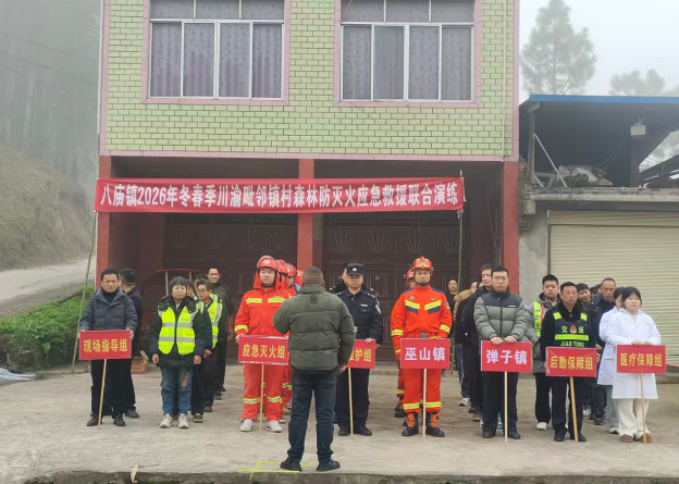 ——开江县八庙镇开展2026年冬春季川渝毗邻镇村森林防灭火应急救援联合演练