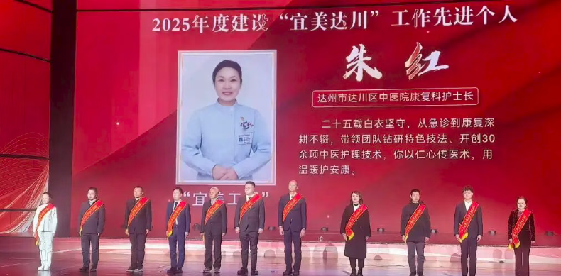 近日,2025年“宜美达川”成果汇报会在巴山大剧院盛大开幕,会上除了缤纷多彩的文艺演出,还表彰了2025年度建设“宜美达川”工作中涌现出的先进个人与先进集体代表,达州市达川区中医医院康复科护士长朱红荣获2025年度建设“宜美达川”工作先进个人。 爱岗敬业,她是守护生命的“巾帼标杆” “宜美工匠”,美在匠心,更美在担当。作为医院康复科的中坚力量,朱红二十五年来始终扎根临床一线,将“质量重于泰山”的理念刻进骨子里、落到行动上,用坚守与责任为患者筑牢生命防线。在管理团队时,她格外重视年轻医护人员的培养,秉持“事必做于细,业必精于勤”的理念,以身作则、严以律己,成为团队的“主心骨”。 每天清晨,她总会准时出现在科室朝会上,精准点评各项工作,梳理当日重点任务;随后,便穿梭在各个病房之间,耐心细致地询问每一位患者的病情变化、饮食睡眠,不放过任何一个细微的异常。遇到危重疑难病例,她总能镇定自若、沉着应对,凭借二十余年积累的重症护理经验,与医生紧密配合,为患者量身定制最优护理方案,同时手把手为年轻护士传授技巧、答疑解惑,用专业与温柔,成为同事们最信赖的良师益友。她用日复一日的坚守,诠释着“爱岗敬业”的深刻内涵,用一言一行,树立起巾帼医护的标杆。 情系患者,她是传递温暖的“暖心使者” “宜美工匠”,美在善良,更美在坚守。朱红始终将患者需求放在首位,用心用情解决群众“急难愁盼”问题,把温暖与关怀送到每一位患者心中,用温柔与坚守,驱散患者心中的病痛与阴霾。她常说:“康复之路不易,我们不仅要治好患者的病,更要暖好他们的心。” 为了给患者创造舒适、便利的就医环境,她积极协调,与科室同事一同为病房配备了冰箱、洗衣机、热水器、微波炉等生活设施,切实解决了患者住院期间的生活难题,让患者在医院也能感受到家的温暖。她格外关注患者的情绪变化,总能敏锐地察觉到患者的焦虑、不安与沮丧,主动走上前轻声安慰、耐心鼓励,用真诚的话语缓解他们的心理压力。 探索创新,她是点亮希望的“康复先锋” “宜美工匠”,美在进取,更美在创新。朱红始终保持着笃思好学、奋勇争先的态度,敏锐捕捉健康领域发展趋势,主动突破自我,深耕中医康复领域,用创新与坚守,为患者点亮康复希望之光。她自费购买网络课程,利用业余时间刻苦钻研中医理论,反复研读专业书籍,不断夯实中医基础;在一次川渝联合培训会上,她接触到耳穴疗法,尤其是其在失眠治疗上的显著效果,让她深受触动。她利用休息时间深入钻研耳穴疗法的操作技巧,在医院的大力支持和科主任的悉心指导下,反复实践、不断优化,成功将耳穴疗法应用于临床,取得了良好的治疗效果。 如今,在朱红的带动与引领下,达川区中医医院康复科开展的中医特色护理新技术已达30项,在区域内处于领先水平。九十高龄的患者唐老曾写诗称赞她:“我见朱红护士长,上班忙碌在病房;满腔热忱待患者,数以万计磨手掌。率先引进火龙罐,敢于创新传带帮。堪为医护之楷模,深得病人之赞扬。” 二十五载医路耕耘,二十五载初心不改。朱红用坚守诠释担当,用专业守护健康,用温柔传递温暖,用创新点亮希望,生动诠释了“宜美工匠”的深刻内涵,也彰显了新时代巾帼医护的责任与担当。未来,她将继续勇挑重担、砥砺奋进,与康复科团队一同,为更多患者驱散病痛阴霾,为医院高质量发展贡献更大的巾帼力量。