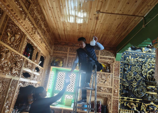 (图为乡城县热麦村驻村第一书记毛盛华为村民更换灯泡)