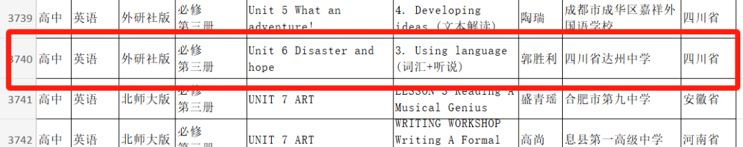 近日,根据《教育部办公厅关于开展2024年“基础教育精品课”遴选工作的通知》(教基厅〔2024]22号)安排,在各省级教育行政部门认真推荐的基础上,2024年“基础教育精品课”遴选“部级精品课”名单公示。达州中学英语教师郭胜利成功入选。