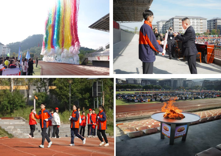 万众瞩目间,火炬手稳稳引燃主火炬盘。烈焰腾空,照亮全场,师生眼中的热忱与期盼被瞬间点燃——这不仅是“更高、更快、更强——更团结”奥运精神的传承,更是学校立德树人、五育并举理念的写照。呐喊声响彻云霄,本届运动会正式迈入热血竞技时刻。