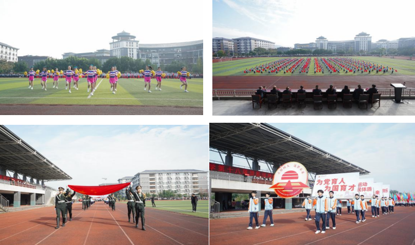 伴随着激昂雄壮的《运动员进行曲》,开幕式入场仪式缓缓拉开帷幕。花球舞蹈队与旗舞队身姿飒爽、精神抖擞,灵动舞姿随旋律舒展,嘹亮乐声在校园上空回荡,率先为盛会铺就了浓厚的喜庆底色;紧随其后,国旗队、校旗队、会旗队、校徽标语队与彩旗队依次登场,迈着铿锵有力的步伐,踏着整齐划一的节拍,五彩旗帜迎风招展,猎猎作响,既展示着国旗的庄严神圣,校旗的鲜明物质,更彰显我校蓬勃向上、锐意进取的精神风貌。