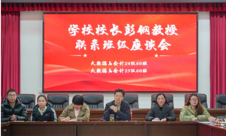 为深入贯彻落实学校领导联系师生工作要求,切实搭建校领导与学生沟通交流的桥梁,12月18日,四川三河职业学院校长彭钢教授在第三会议室召开联系班级座谈会,为2024级大数据与会计60班、2025级大数据与会计60班的71名学生带来了一场别开生面的二十届四中全会精神专题辅导。经济管理学院院长李红英、党总支书记冯小群、学办主任阮飞云及相关班级辅导员参与。 座谈会上,两个班级的学生代表先后发言,详细汇报了班级建设、学风营造、活动开展等方面的情况,分享了入学以来在学习生活中的收获与感悟,并围绕课程设置、实习就业、校园服务等同学们关心的热点问题提出了意见和建议。 在互动交流环节,彭钢校长认真倾听每一位学生的发言,对大家积极向上的精神风貌和提出的合理化建议给予充分肯定;针对同学们提出的疑问,他逐一耐心细致地解答,为学生们排忧解难。同时,彭钢校长结合二十届四中全会精神,从学业规划、职业发展、个人成长等方面为同学们提供了专业指导,鼓励大家树立远大理想,珍惜大学时光,夯实专业基础,提升综合素养,努力成为适应新时代发展需求的高素质技能人才。 此次座谈会氛围热烈融洽,校领导与学生面对面交流、心贴心沟通,不仅让同学们感受到了学校的关怀与温暖,更让二十届四中全会精神在潜移默化中入脑入心。同学们纷纷表示,将牢记校领导的殷切嘱托,把会议精神转化为学习的强大动力,在今后的班级建设、学习生活及实习就业中严格要求自己,为学校、学院和班级的发展贡献青春力量。
