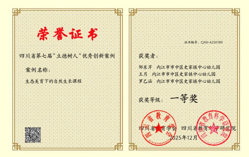 深耕自然美育 立德树人结硕果——内江市中区史家镇中心幼儿园斩获省级案例评选一等奖