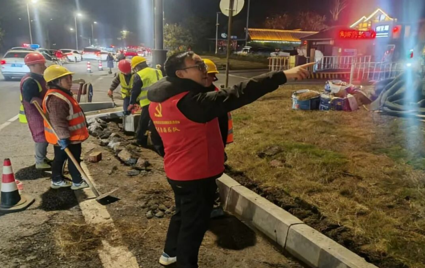 在各充电场站、生态停车场等便民点位,党员们轮班坚守岗位,白天监督公共区域卫生清洁与环境维护、引导车辆有序停放,夜晚加强设施安全巡检,快速处置各类突发情况,保障市民出行顺畅。深夜的项目出入口及周边区域,党员干部带头开展夜间流动摊贩管控巡查,耐心劝离无照经营行为,规范周边环境秩序,守护城市夜间环境的整洁与安宁,让城市颜值与居住舒适度同步提升。